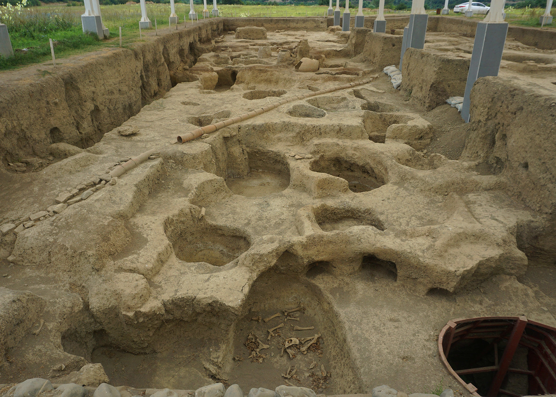 As a result of many years of archaeological excavations carried out here by prominent Azerbaijani archaeologists S. Gaziyev, G. Ahmadov, I. Aliyev, F. Gadirov, and others, the remains of large buildings and fortress walls from the Antiquity period, as well as material-cultural artifacts related to production and craftsmanship, have been uncovered.
